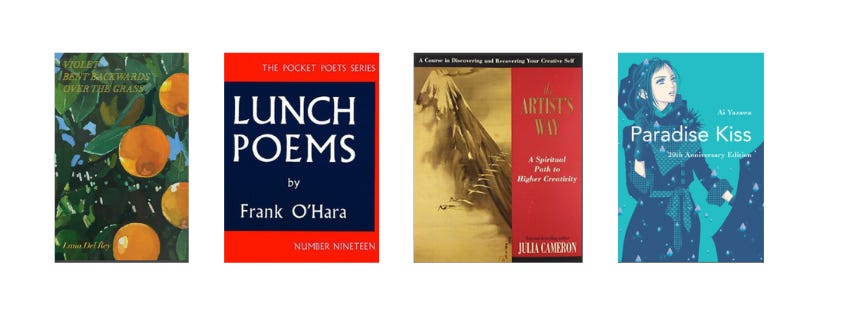 Violets Bent Backwards Over the Grass by Lana Del Rey | Lunch Poems by Frank O’Hara | The Artist’s Way by Julia Cameron | Paradise Kiss by Ai Yazawa