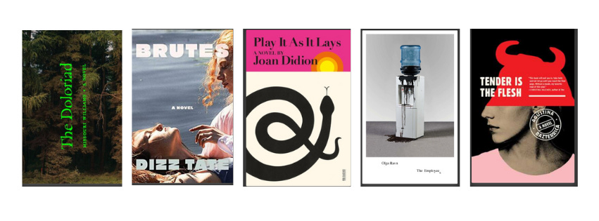 The Doloriad by Missouri Williams | Brutes by Dizz Tate | Play It As It Lays by Joan Didion | The Employees by Olga Ravn | Tender Is the Flesh by Agustina Bazterrica